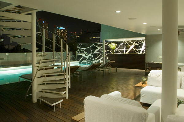 The pool and deck in the 5th floor offer a unique experience. Besides the gym with cardio-vascular equippment it also offers a treament room, sauna, and an open air jacuzzi.