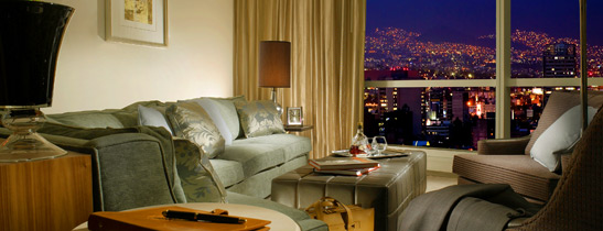 Views of three Mexico City icons—the Independence Column (El Ángel), the Fountain of Diana the Huntress, and the Chapultepec Castle—greet guests of the magnificent Astor Suite. This graciously appointed 1,647 square-foot space features a grand living room and a private dining salon that may also function as a meeting room.
