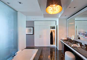 Guests are welcomed by their own personal escort and a private check-in to 44 lavishly decorated guestrooms and suites featuring a masterpiece of contemporary design, luxurious bedding and Bang & Olufsen state-of-the-art video and sound systems.