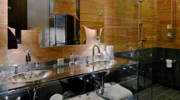 Few visitors to New York can claim to have viewed the changing lights of the Empire State Building from their suite at our hotel in the heart of New York City’s Midtown. Guests of the 787 square foot / 73 square meter Splash Suite at our Midtown New York City hotel can. The capacious, Tony Chi-designed corner suite has 12 foot ceilings, and looks south to the iconic building and west to 5th Avenue and the New York Public Library. The oversized travertine marble bathroom has a walk-in rain shower, double sinks and amenities from legendary apothecary C.O. Bigelow, with a black porcelain foot bath, in case it’s just your feet that need the splash. Non-alcoholic mini-bar beverages and snacks, wireless Internet, local phone calls, and access to the gym are complimentary, and you’ll also find a Geneva Sound System with iPod dock and 54” HDTV.