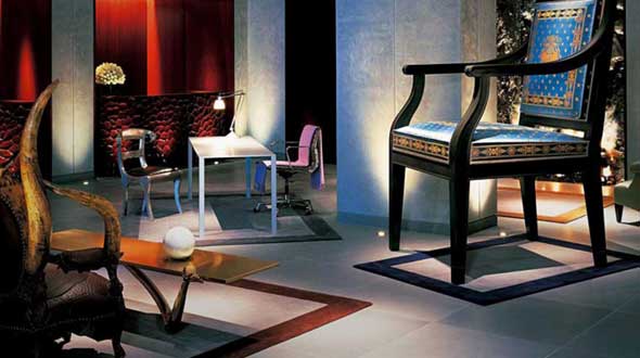 Clift’s famous and historic Redwood Room has been restored and reinvented as an exceptionally elegant and modern San Francisco bar. Suffused with all-out glamour, the interior features the original redwood paneling and enormous bar, which, legend has, was carved from a single redwood tree, as well as Starck-designed lounge furniture and an ever-changing array of digital artwork displayed on plasma television screens hung throughout the room.